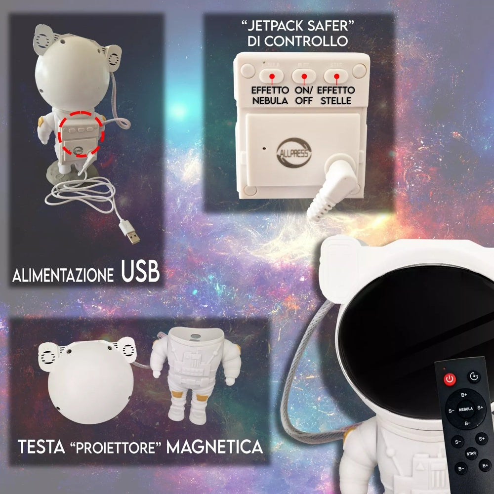 Proiettore LED Astronauta Galaxy con Telecomando e Timer USB