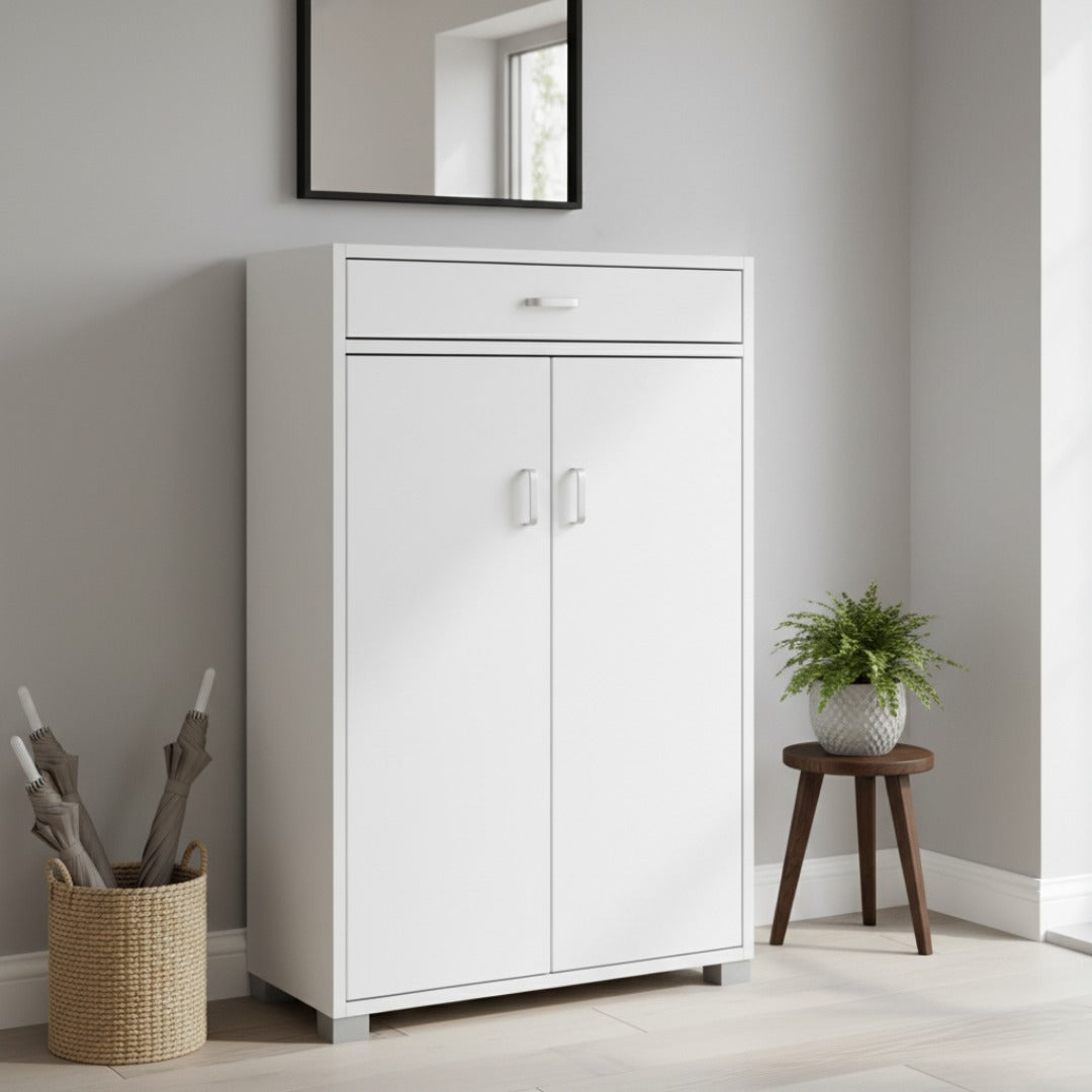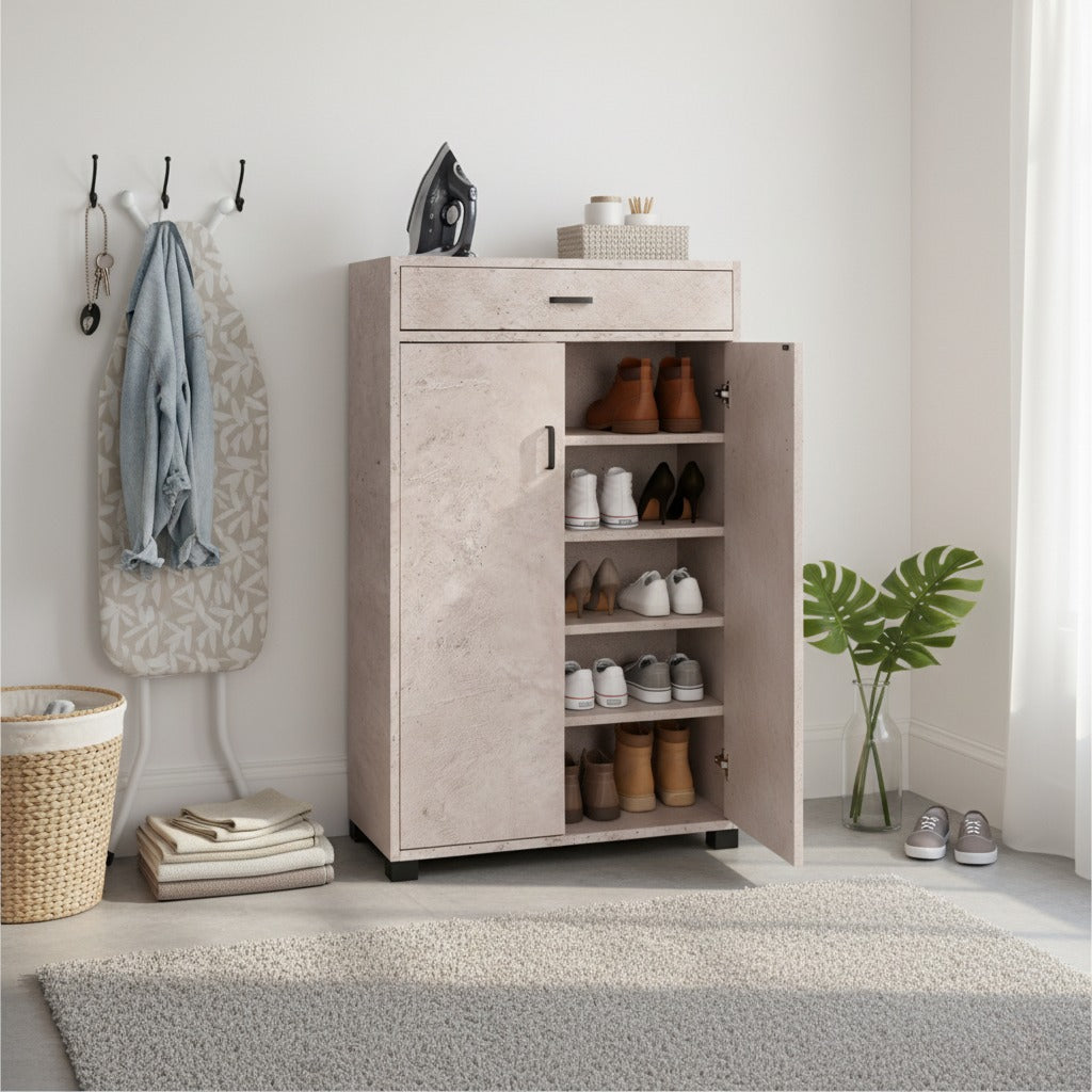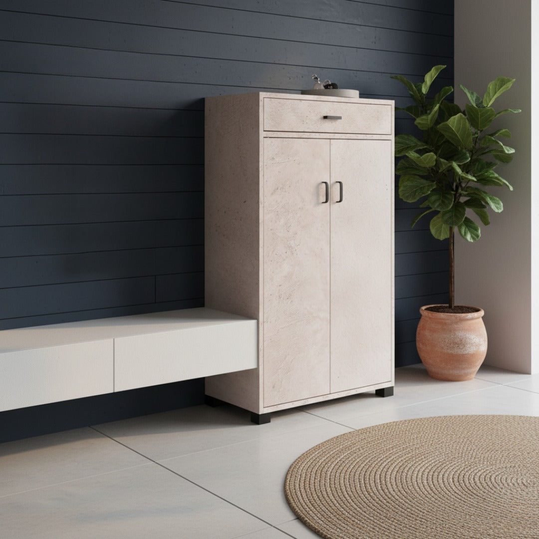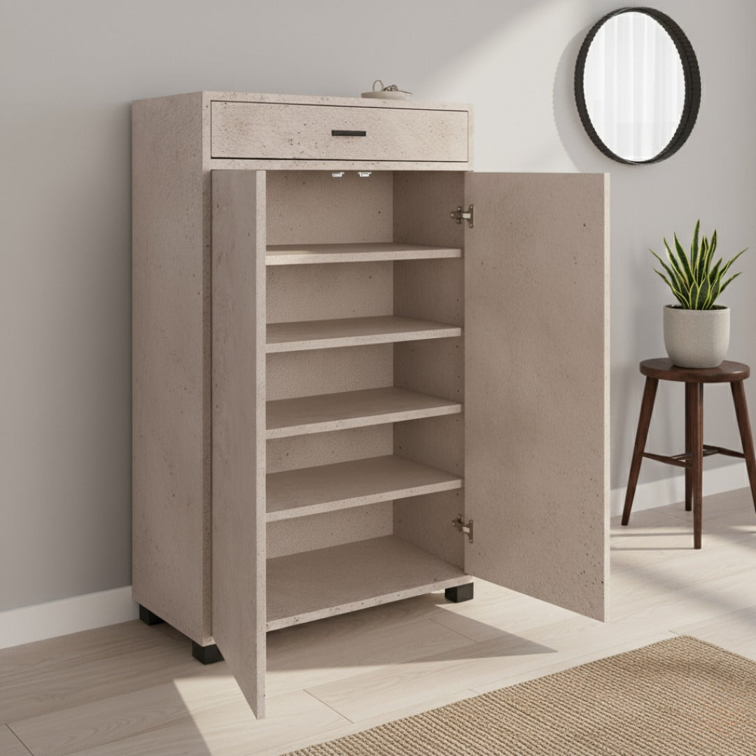 Scarpiera salvaspazio moderna 95 cm con cassetto e ante bianca cemento o rovere