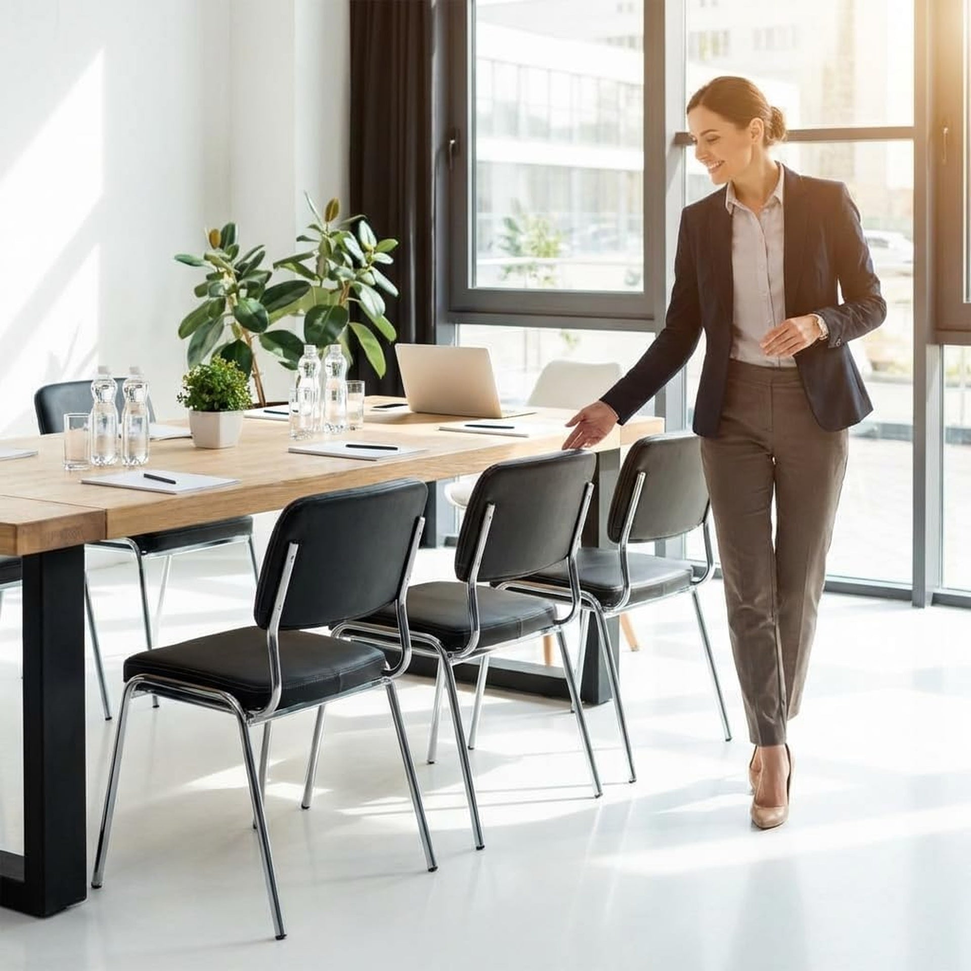 -Ottimizza lo spazio in ambienti professionali grazie al design impilabile che consente di riporre facilmente le sedie quando non utilizzate, mantenendo ordine e funzionalità in sale riunioni, conferenze e attese