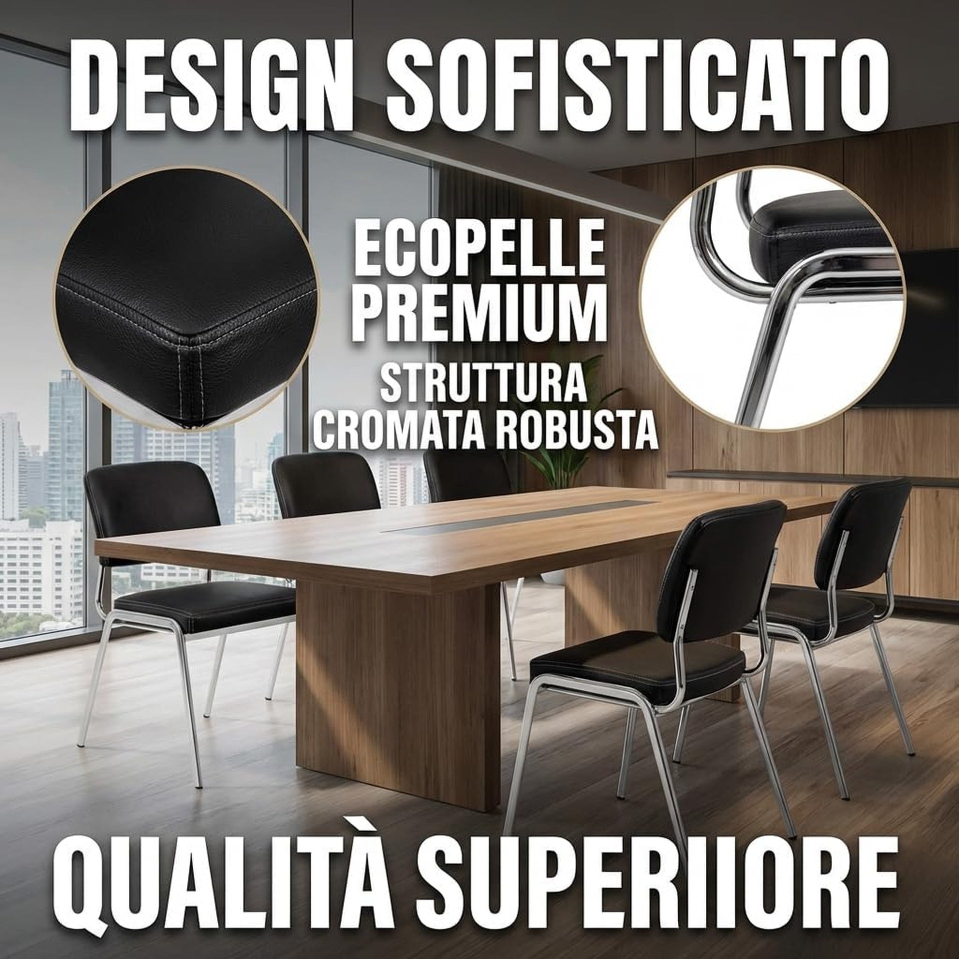 4 Sedie Conferenza Impilabili in Ecopelle Struttura Cromata Ufficio Sala Attesa