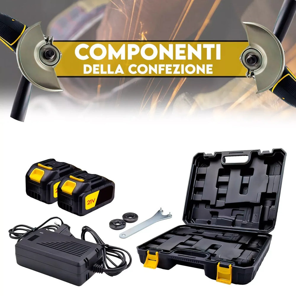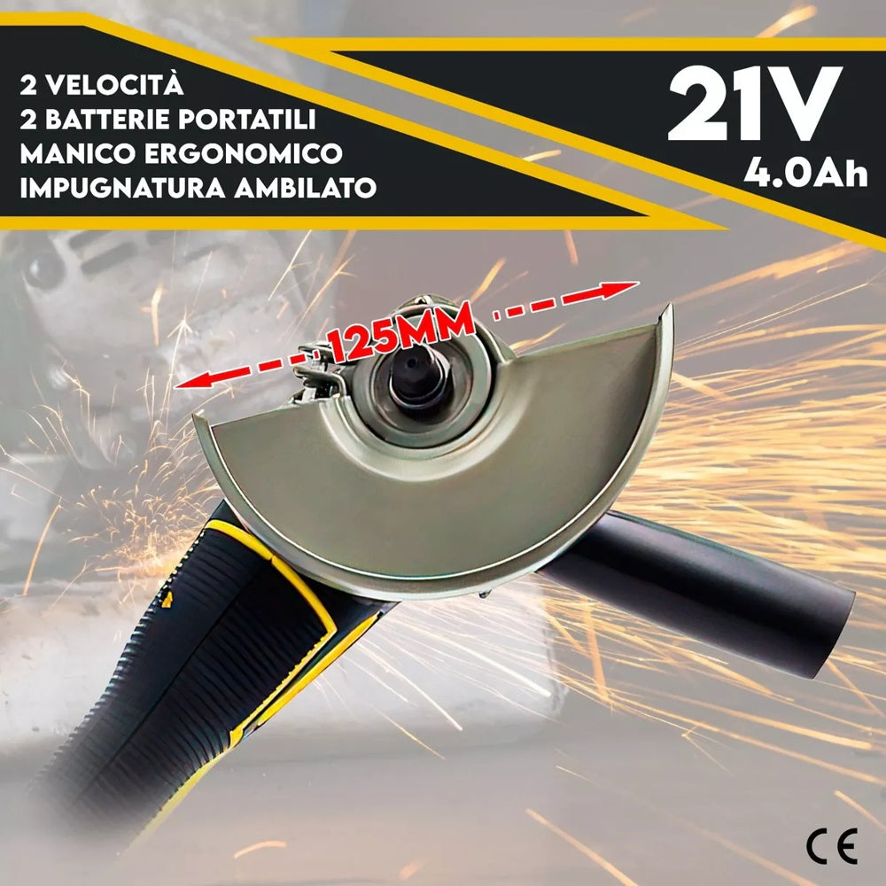 Smerigliatrice Angolare 21V con 2 Batterie, 100/125mm, 8500rpm + Valigetta
