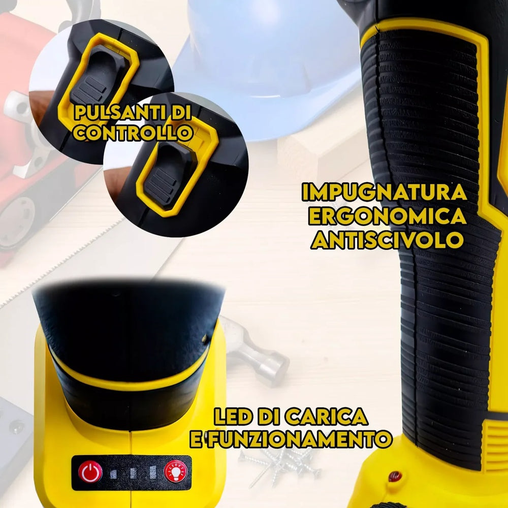 - DUE BATTERIE INCLUSE: Con due batterie da 4mAh, garantisci sessioni di lavoro prolungate senza interruzioni.
