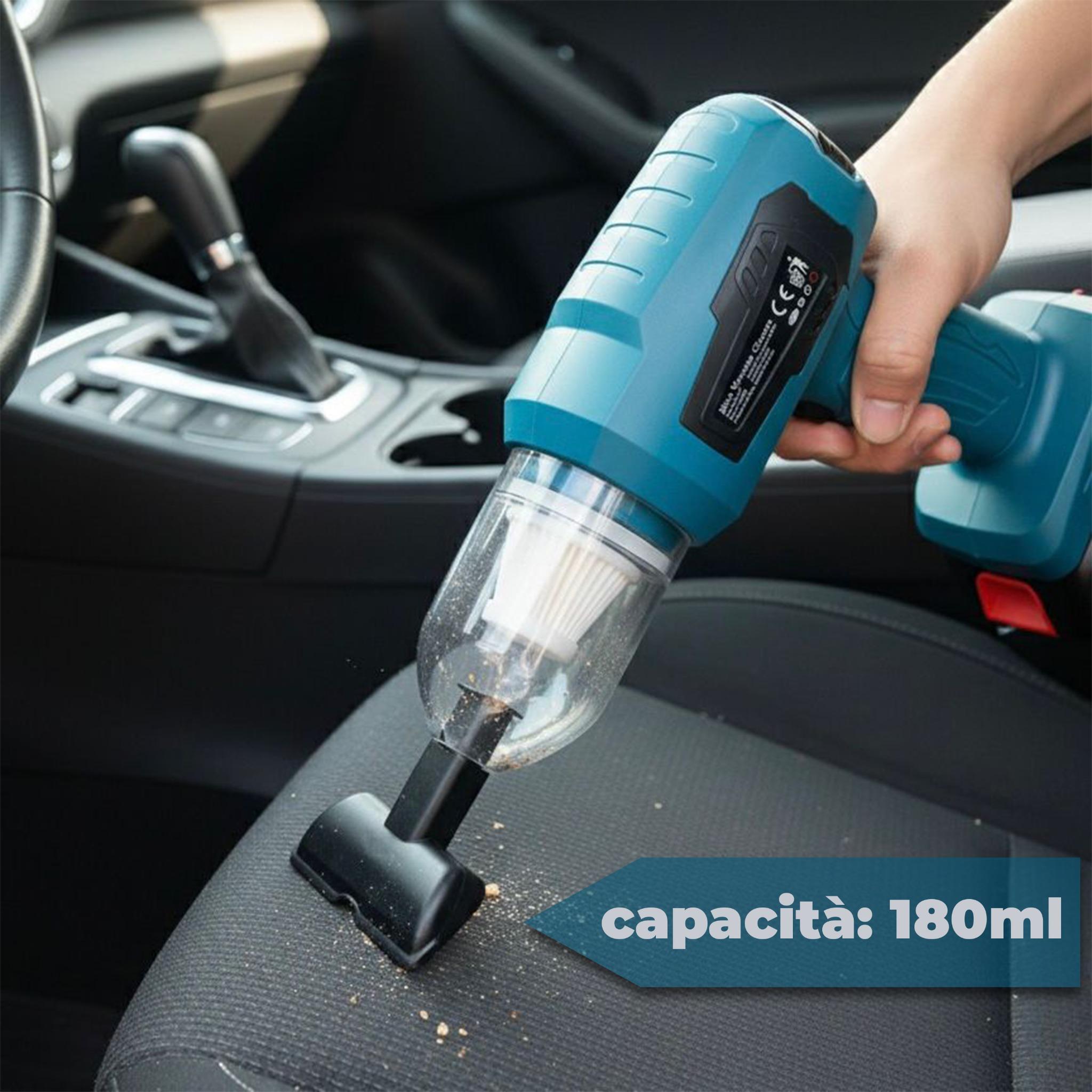 Prestazioni elevate grazie al motore da 500W che assicura una pulizia profonda aspirando polvere, briciole e peli in pochi secondi, ideale per auto, uffici e casa.