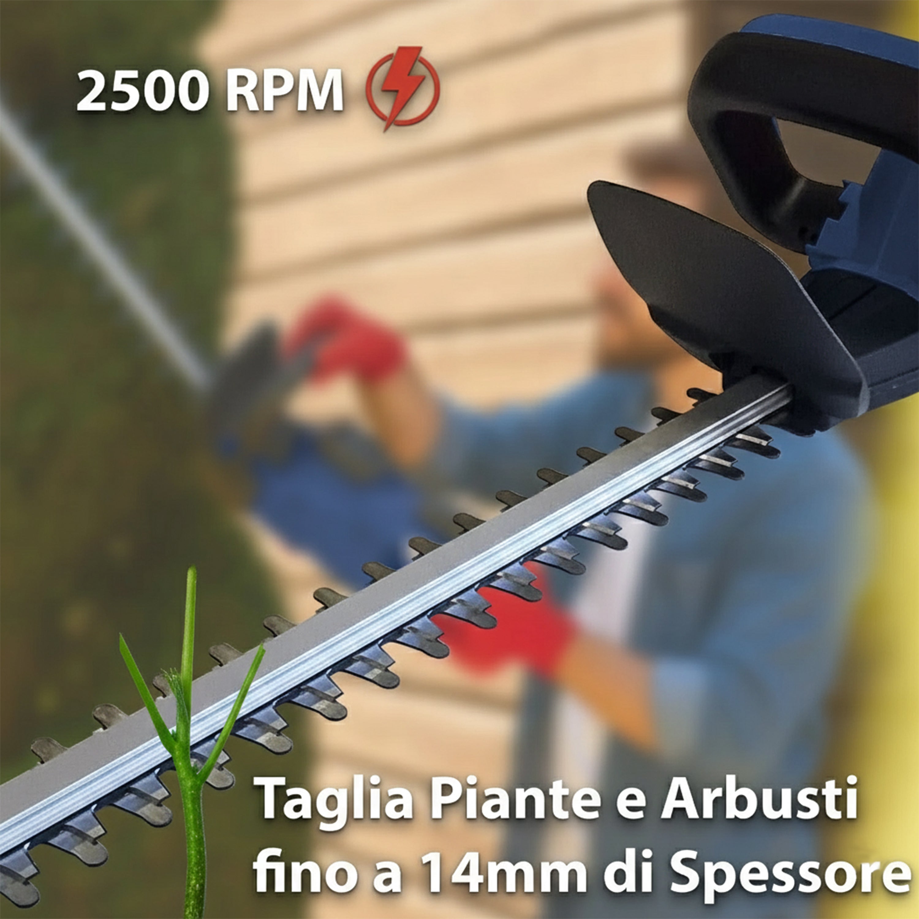 MASSIMA POTENZA DI TAGLIO: Il motore da 1300W e la lama da 52 cm garantiscono tagli netti, rapidi e precisi anche su rami spessi fino a 14 mm, rendendo ogni lavoro di giardinaggio professionale e veloce.